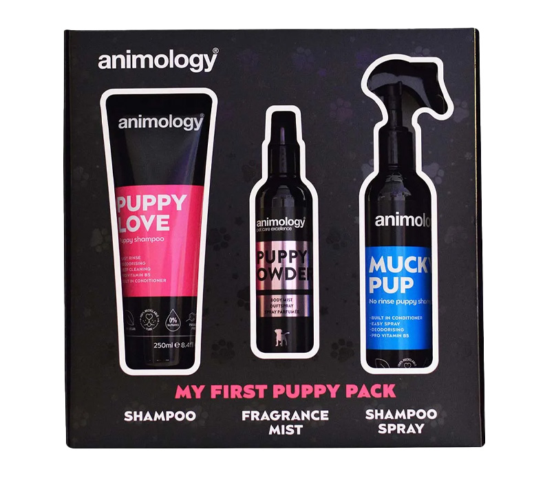 Thoughtfully curated to make your puppy’s early grooming experience extra special, My First Puppy Pack is the perfect combination of Animology grooming products to welcome your new fur baby into the family and introduce them to a lifetime of pampering and coat care. Our Puppy Love Shampoo is a soft and gentle formulation, perfect for keeping your puppy’s young coat soft, fresh and in optimum condition. For when time is short and a quick spruce up is required, Mucky Pup No Rinse Shampoo Spray provides a quick and easy solution, with no need for water. Finally, our Puppy Powder Fragrance Mist is ideal for applying a boost of Baby Powder Fragrance to your puppy’s coat, making cuddle time even more irresistible!