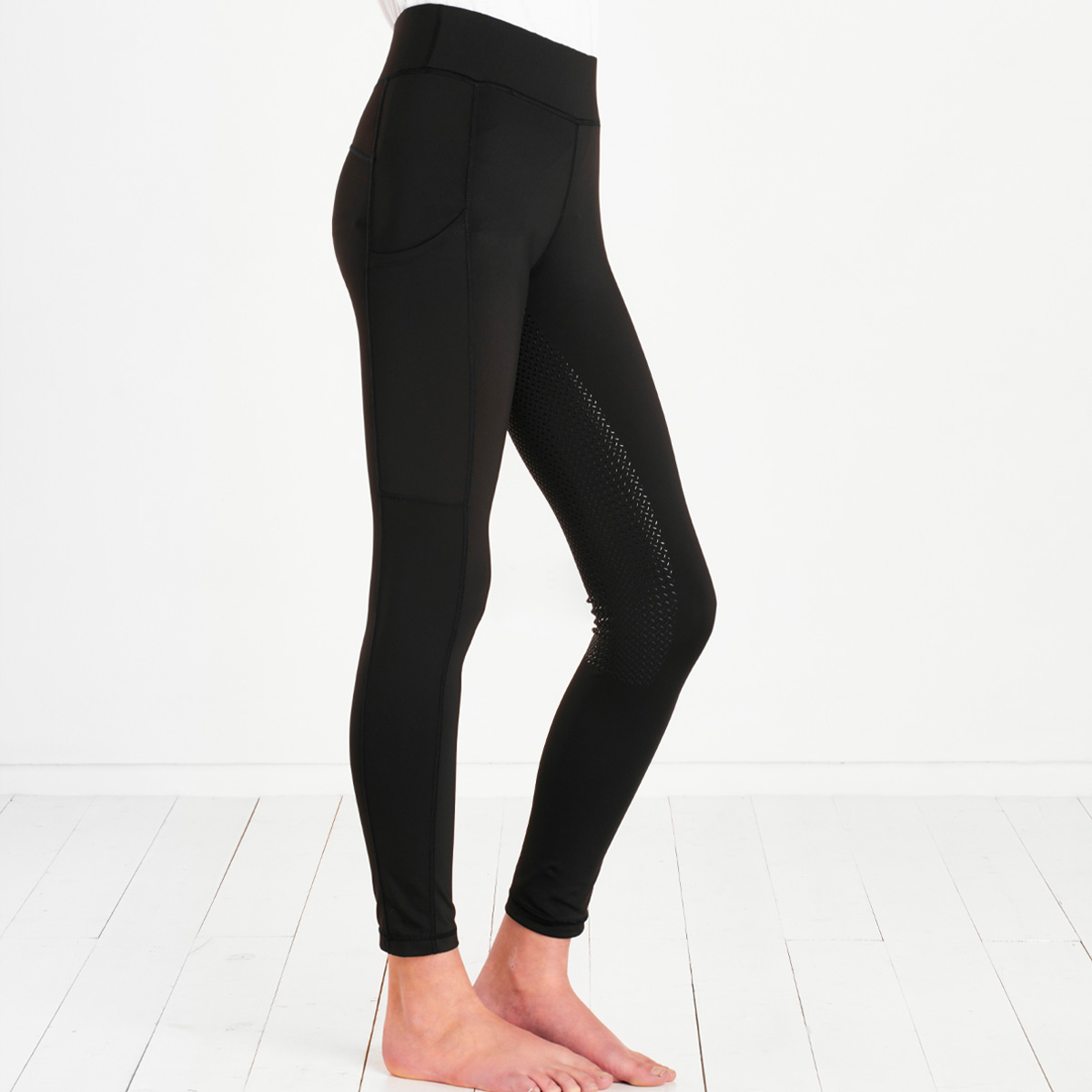 Everything you require in a riding tight at an affordable price make these a must have riding tight for any junior equestrian. Packed with lots of handy features including two large phone pockets, full silicone seat, wide elastic waistband, 4-way stretch fabric and a seamless inner leg design for ultimate comfort. Constructed from a durable Polyester and Elastane fabric, they are the perfect everyday riding tight, leisure tight or general sport legging. Made from a supportive unrestrictive fabric that is comfortable and allows for free easy movement, with brilliant recovery for durable wear wash after wash. The deep self-fabric waistband is fully elasticated for a supportive but comfortable finish against the skin to keep these tights in place day in day out. Constructed in a minimal seam design featuring flat lock seams for unrestricted comfort and to reduce the chance of any rubs or irritation.
