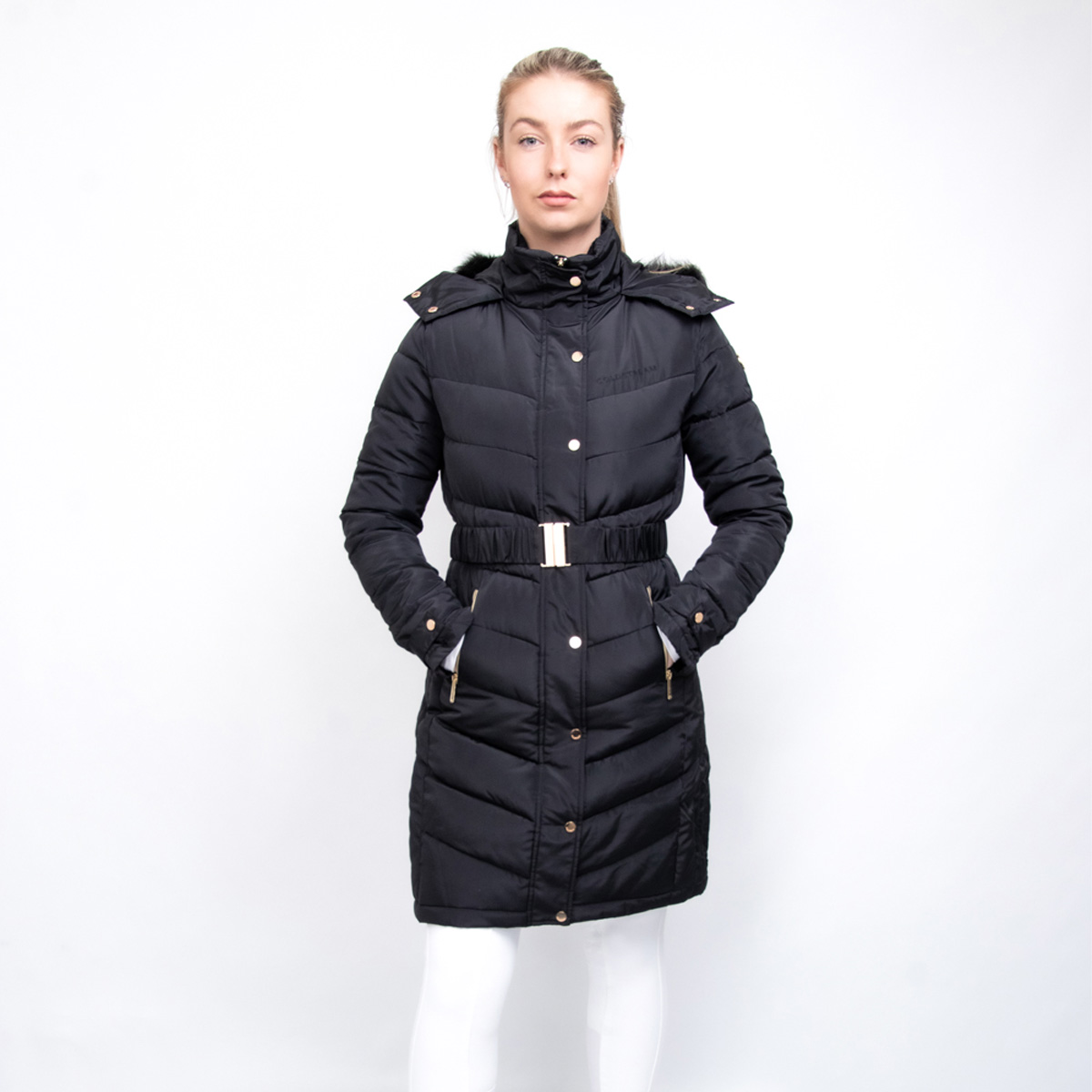 The Coldstream Branxton Long Quilted Coat is a must addition to your winter coat collection! The quilted luxury faux duck down panels ensure optimum insulation, by trapping warm air to create a snug feeling on those frosty days. This gorgeous coat features detachable premium faux fur around the hood and faux fur on the collar to keep you toasty and a flattering belt to secure the coat and creates a tailored shape and silhouette. The rear zipped vent allows for this coat to be used easily when riding, so you can look on-trend and be comfortable in and out the saddle. Exquisite gold detailing finishes off this stylish item, including a two-way front zip, press studs, zipped pockets and subtle Coldstream badge to the arm. As with any signature Coldstream piece, you are guaranteed supreme style and performance with this deluxe garment.