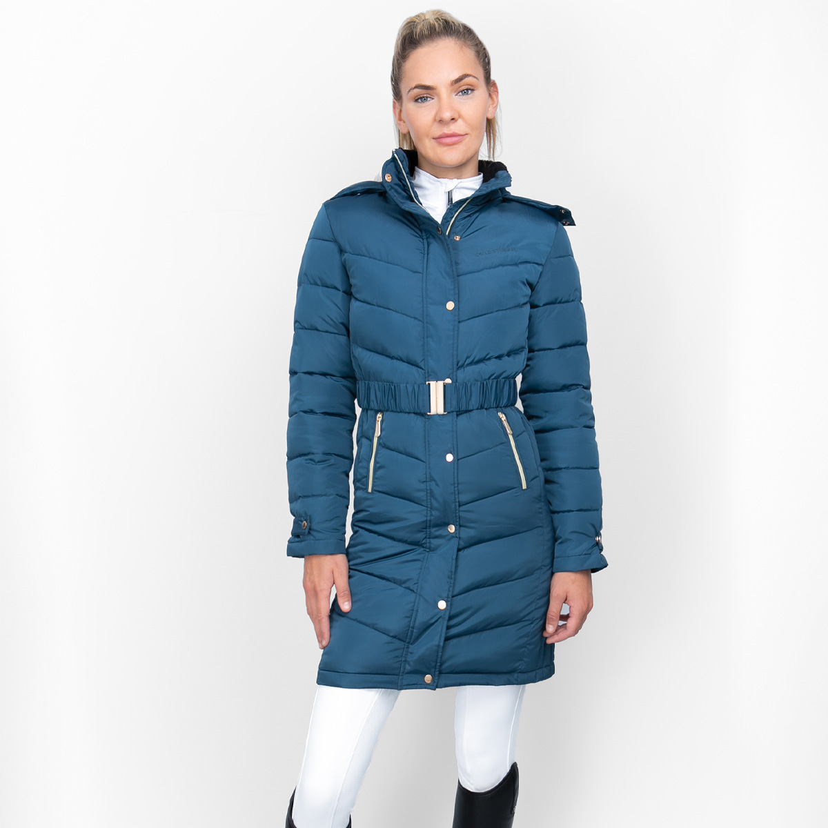 The Coldstream Branxton Long Quilted Coat is a must addition to your winter coat collection! The quilted luxury faux duck down panels ensure optimum insulation, by trapping warm air to create a snug feeling on those frosty days. This gorgeous coat features detachable premium faux fur around the hood and faux fur on the collar to keep you toasty and a flattering belt to secure the coat and creates a tailored shape and silhouette. The rear zipped vent allows for this coat to be used easily when riding, so you can look on-trend and be comfortable in and out the saddle. Exquisite gold detailing finishes off this stylish item, including a two-way front zip, press studs, zipped pockets and subtle Coldstream badge to the arm. As with any signature Coldstream piece, you are guaranteed supreme style and performance with this deluxe garment.