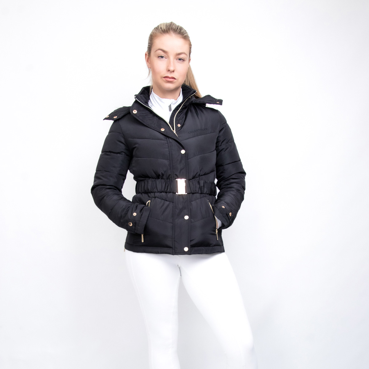 The stunning Cornhill Quilted Coat is engineered with quilted luxury faux duck down panels ensure optimum insulation, by trapping warm air to create a snug feeling. The detachable premium faux fur around the hood and faux fur on the collar to not only look stylish but keeps you toasty in the cold weather. This gorgeous coat features detachable premium faux fur around the hood and faux fur on the collar to keep you toasty and a flattering belt to secure the coat and creates a tailored shape and silhouette. The rear zipped vents allow for this coat to be used easily when riding, so you can look on-trend and be comfortable in and out the saddle. Exquisite gold detailing finishes off this stylish item, including a two-way front zip, press studs, zipped pockets and subtle Coldstream badge to the arm. As with any signature Coldstream piece, you are guaranteed supreme style and performance with this deluxe garment.