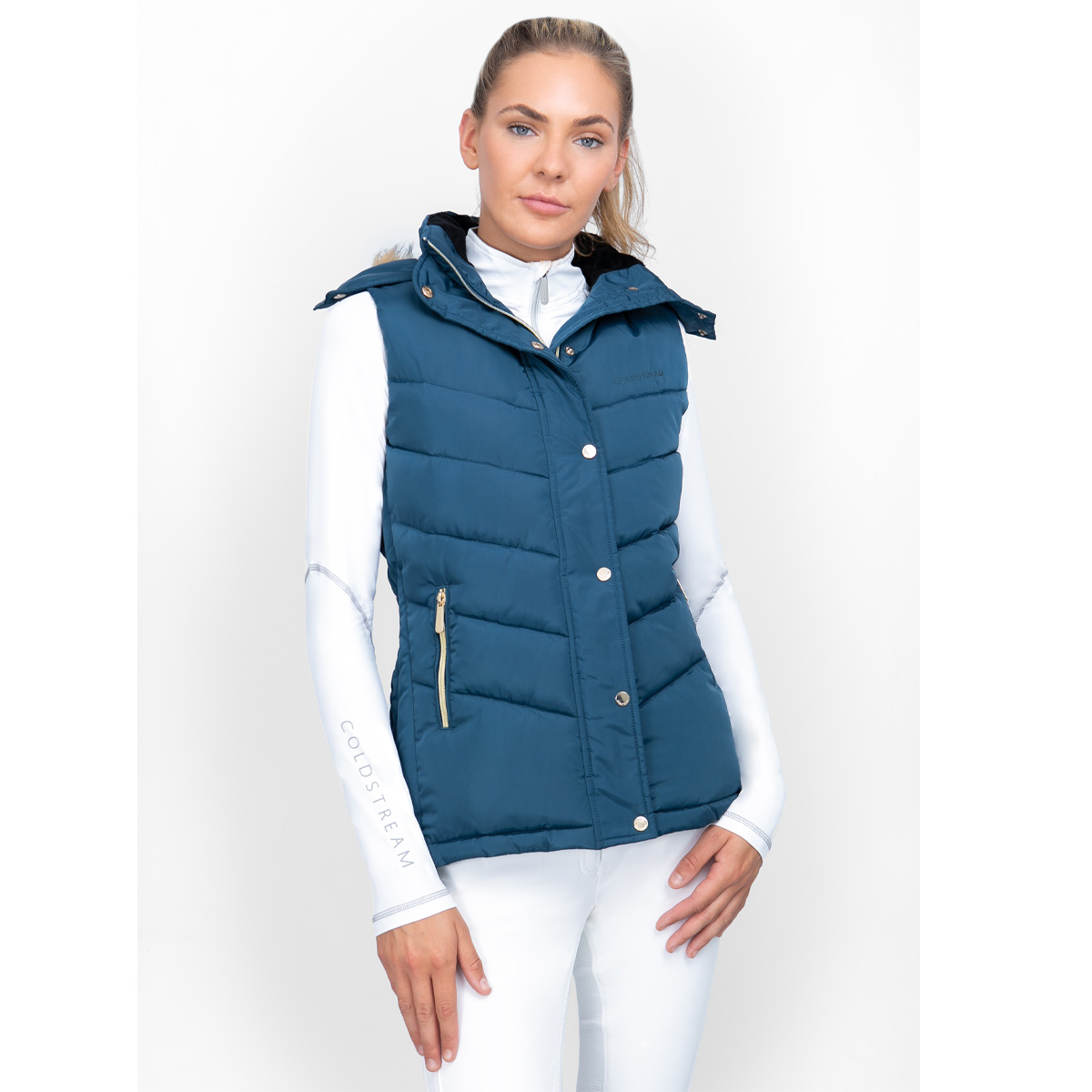 The luxury Leitholm Quilted Gilet features faux duck down panels to ensure optimum insulation by trapping warm air to retain heat and create a snug feeling. The premium faux fur to the collar and detachable faux fur trim to the hood not only look stylish and sophisticated, but also guarantee you stay toasty on the cold winter days. Rear zipped vents and gold two-way front zip fastening allow for this gilet to be used easily when riding, so you can look on-trend both in and out the saddle. Gold detailing finishes off this stylish item, including press studs, zipped pockets and subtle Coldstream badge. This is the ideal layer to wear over a Coldstream base layer to create a fashionable look this season.