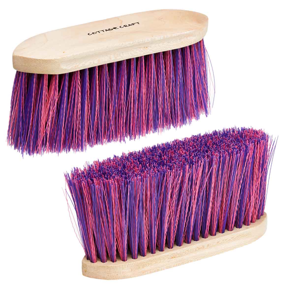 Designed to flick off dirt and dust easily leaving your horse's coat clean and shiny. Polishes the coat so the horse can look freshly groomed at all times. Wooden backed brush with mixed pink and purple colour bristles.