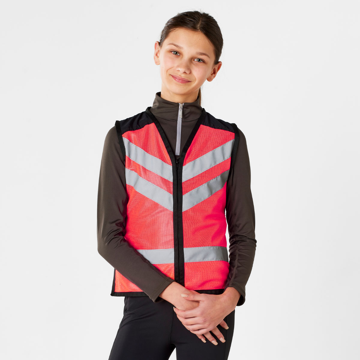 Enhance your visibility with the Harry Hall Childrens Hi Viz Tabard, perfect for low-light and poor visibility conditions. Constructed from a lightweight durable fluorescent mesh makes this perfect for all year-round use, reflective strips and branding to boost visibility from every angle. Front zip fastening for safe and secure closure over your clothing. Featuring an adjustable waist with hook and loop fastenings to allow for a tailored fit. An extremely useful and versatile addition to your Hi Viz wardrobe, with an added extra of an internal pocket which means you can take those personal belongings with you, allowing room for keys, phone or treats. Matching items available to complete the head to toe look for you and your horse.