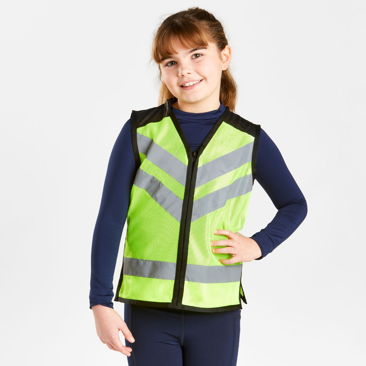 Enhance your visibility with the Harry Hall Childrens Hi Viz Tabard, perfect for low-light and poor visibility conditions. Constructed from a lightweight durable fluorescent mesh makes this perfect for all year-round use, reflective strips and branding to boost visibility from every angle. Front zip fastening for safe and secure closure over your clothing. Featuring an adjustable waist with hook and loop fastenings to allow for a tailored fit. An extremely useful and versatile addition to your Hi Viz wardrobe, with an added extra of an internal pocket which means you can take those personal belongings with you, allowing room for keys, phone or treats. Matching items available to complete the head to toe look for you and your horse.