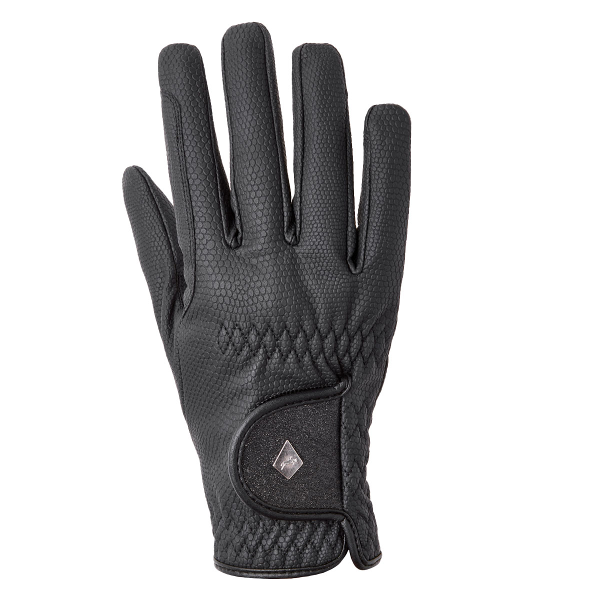 A functional riding glove with expert grip, secure cuff closure and internal fleece lining for extra warmth in colder seasons. The soft and supple outer PU fabric allows for the perfect snug fit and close contact with the reins. The lightweight fleece lining adds extra warmth for added protection to the rider's hands during the colder months, without restricting movement or feel to the reins. The classic design and subtle sparkle details make these gloves Ideal to use when a smart appearance is required but also need some added warmth. Finished with embossed Harry Hall metal badge branding to the cuff and a hint of sparkle for an elegant detail. The gloves are constructed from highly durable materials ensuring a longevity of wear season after season, making these a must have item during the colder months.