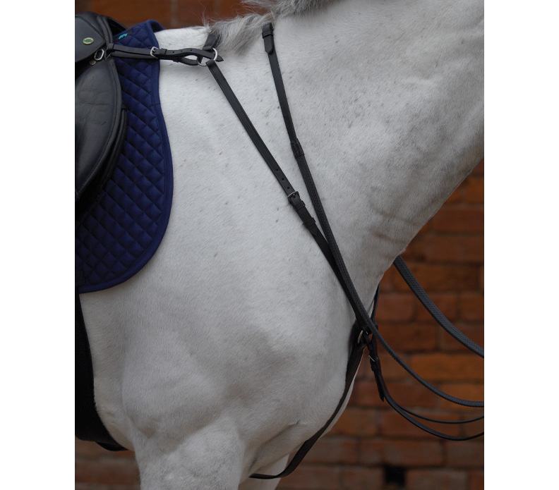 High quality leather with fully adjustable neck strap, wither straps and a removable martingale attachment.