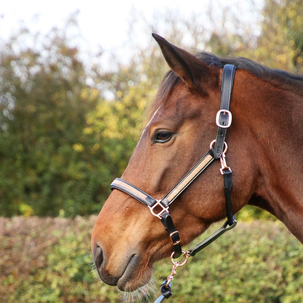 Hy Equestrian Rosciano Rose Gold Head Collar Black