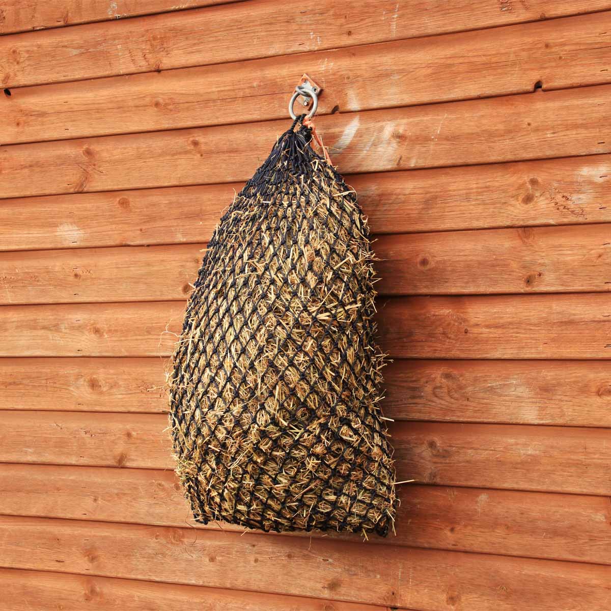 The Hy Equestrian Slow Flow Haynet is perfect for greedy feeders, those on a diet or horses that need their ad lib forage controlled. Individually crafted with small holes to slow hay consumption and trickle feed your horse or pony, ensuring better digestion and less waste on the floor. Durable and practical, this haynet will hold approximately 7kg of dry hay. 3cm holes.
