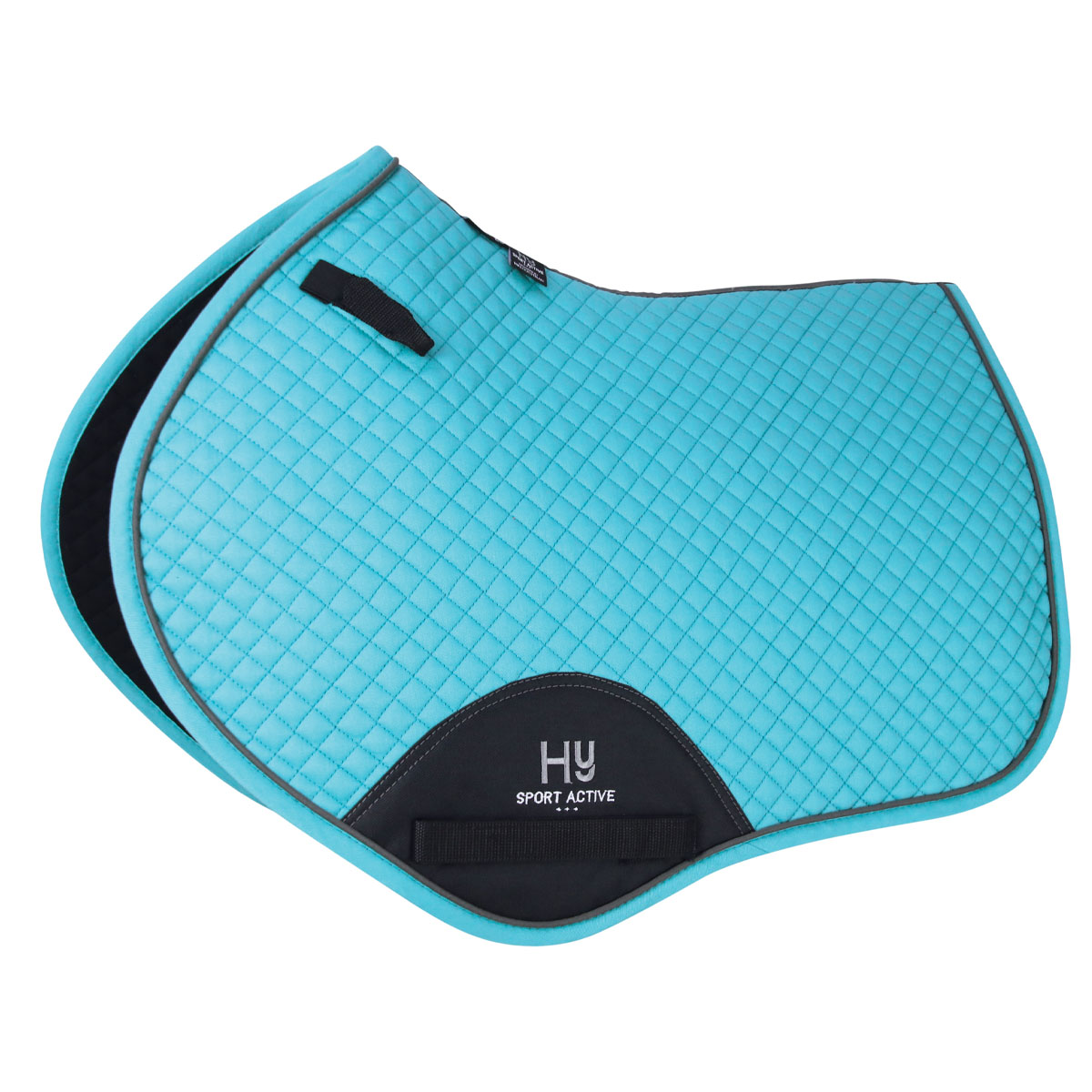 The close contact cut saddle pad has been designed to fit a wide range of close contact saddles, featuring the signature Hy Equestrian cut that provides clearance over the withers to help prevent rubbing. This shape makes it simple to fit and offers ultimate comfort. The pad is made from high quality cotton with a durable anti-rub girth cover protection, complete with double touch tape girth loops for a secure and precise fit. Available in all the exclusive Hy Sport Active colours with charcoal grey contrast piping and spine to match the rest of the collection, suiting a variety of horses and tastes. Machine washable.