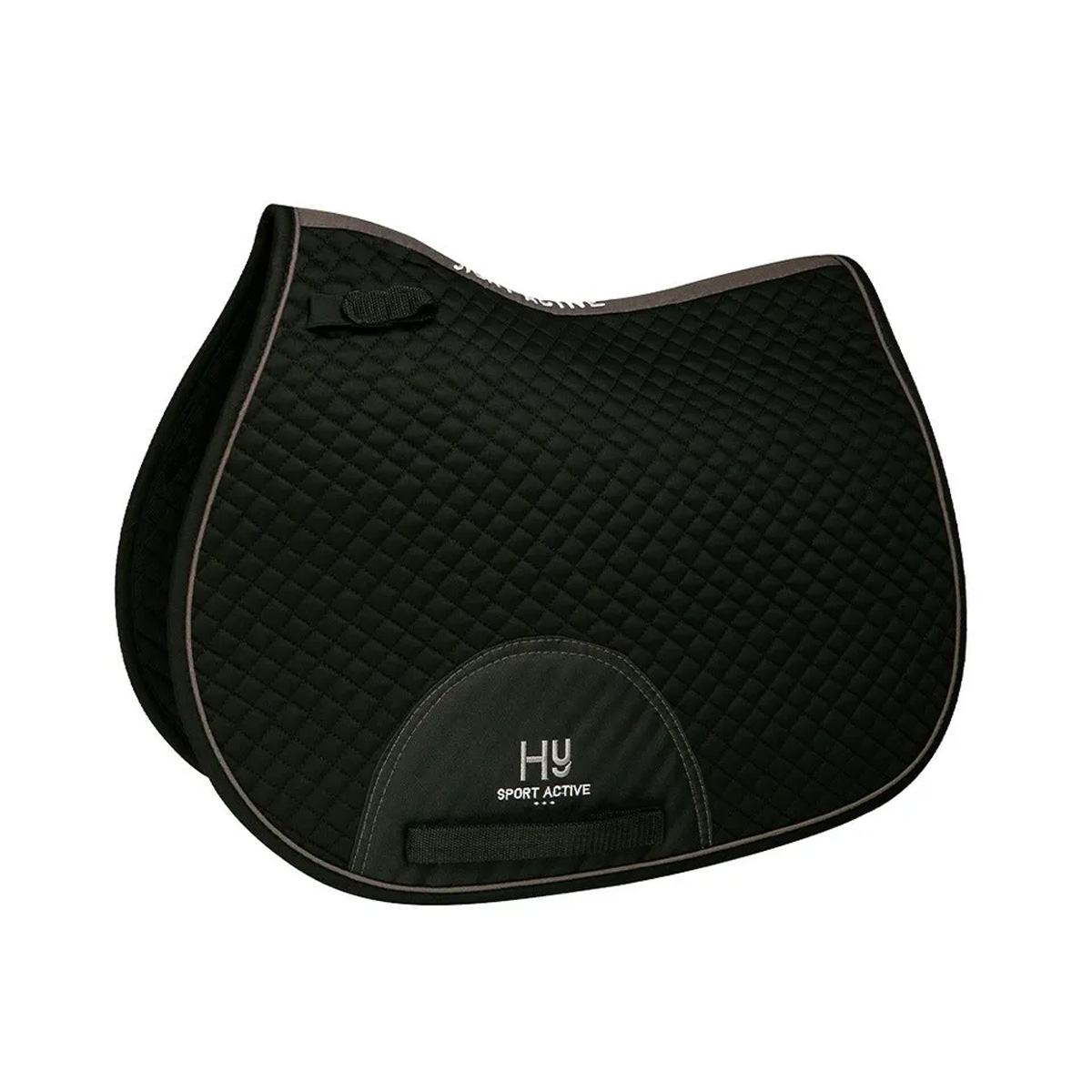 A traditional and classic shaped general purpose saddle pad, designed to fit a wide range of saddles. Featuring the signature Hy Equestrian cut to provide clearance over the withers to prevent rubbing. This shape makes it simple to fit and offers ultimate comfort. The pad is made from high quality cotton and a moisture wicking lining. It also features a durable anti-rub girth cover protection, complete with double touch tape girth loops for a secure and precise fit. Available in all the exclusive Hy Sport Active colours with charcoal grey contrast piping and spine to match the rest of the collection, suiting a variety of horses and tastes. Machine washable.