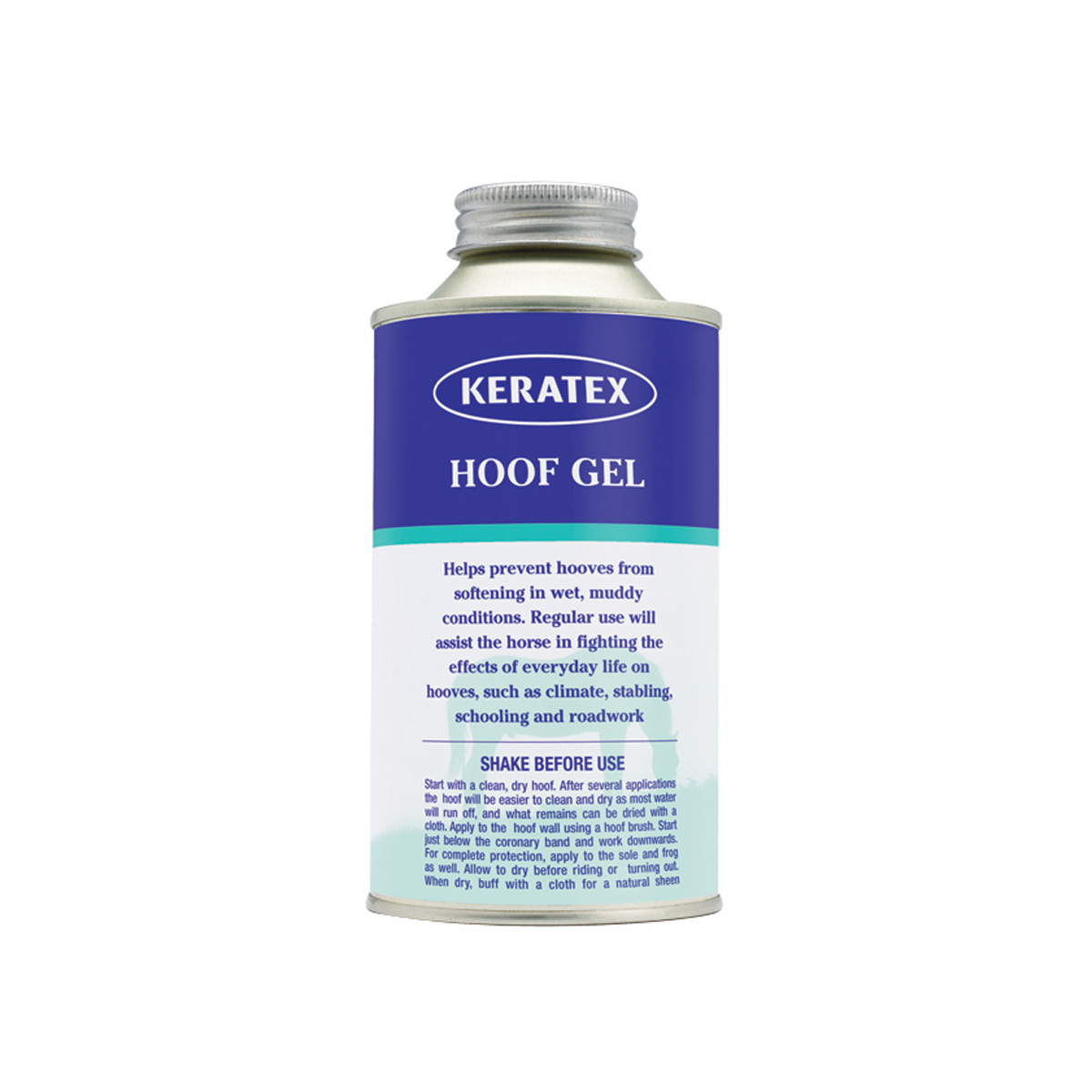 Designed for wet weather use, Keratex Hoof Gel forms a protective, waterproof and breathable layer over the hoof, keeping hooves water-tight and preventing them from softening, splitting or breaking up in wet, muddy conditions. By stopping water from saturating the internal structures of the hooves, the hooves have the time, space and correct conditions for the horse to be able to restore hoof quality. So if you find that your horse’s hooves deteriorate, soften, throw shoes or become saturated in wet or humid conditions, apply Keratex Hoof Gel all over the hoof, frog, soles and heels every other day to restore the quality and strength in your horse’s hooves. We give you our quality promise that Hoof Gel absorbs into the hooves and therefore will not ‘come off’ in the field whatever the conditions. Once the product has absorbed into the hooves you will see that water forms droplets that simply roll off the hooves like rain off a waxed jacket or water off a duck’s back.