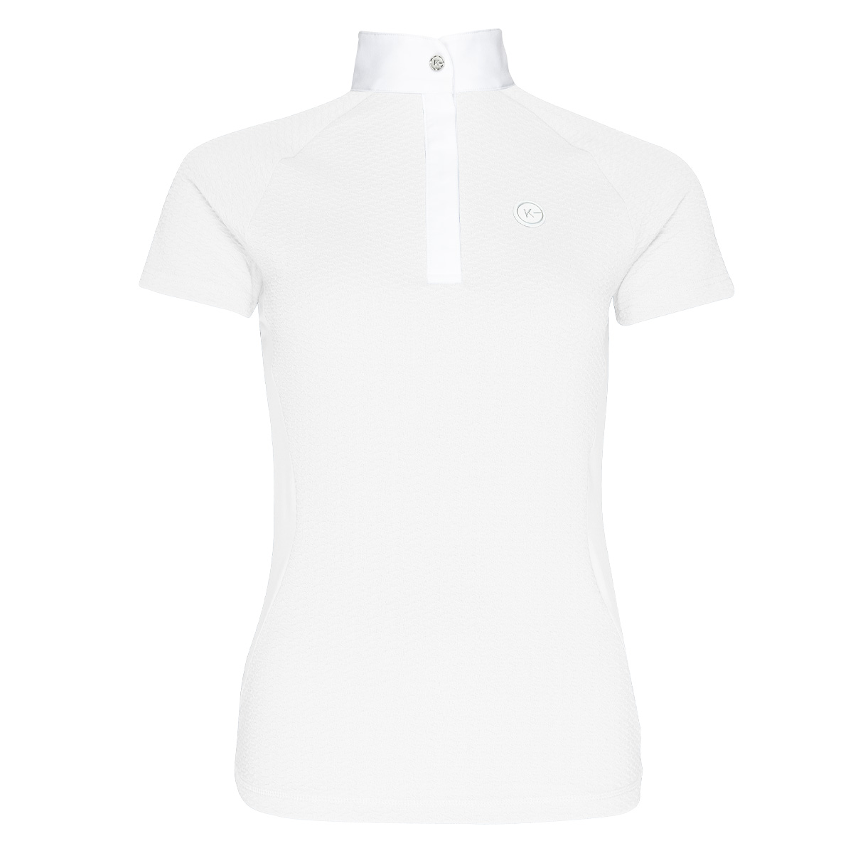- Silver lurex embroidery on the collar and a small logo patch on the chest