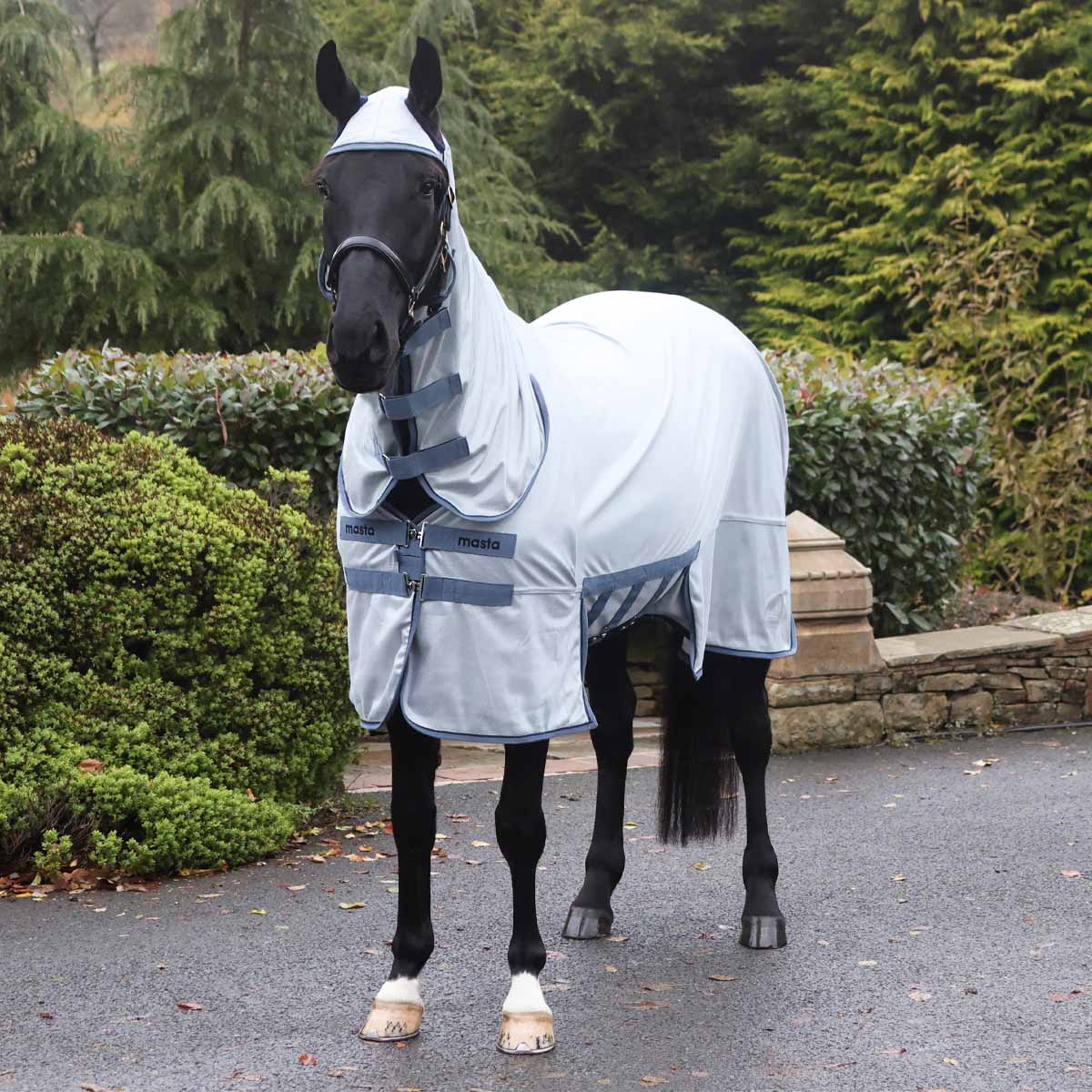The ultimate in fly protection for your horse in the summer seasons, the Masta Combo Fly Rug with Belly Wrap offers head to tail protection from biting insects. Made from a soft mesh that is highly breathable allowing great airflow, keeping your horse cool in warmer weather. The longer cut, integrated neck cover with fleece lined ear holes gives full coverage even when grazing and is secured by hook and loop fastenings, the top strap has an elastic insert allowing for added comfort around the head.