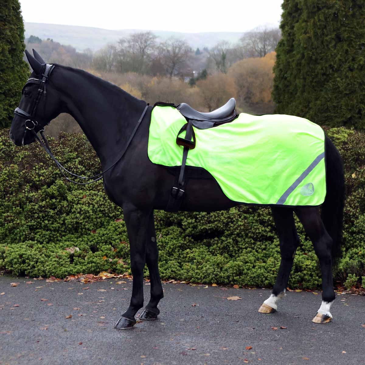 The Masta Hi Viz Mesh Exercise Sheet is super lightweight and highly breathable, designed to keep your horse comfortable in summer months or for horses that can get too hot in a thermal exercise sheet. Made from brightly coloured mesh material to help with visibility on the roads whilst also protecting from biting insects. The close weave mesh acts as a barrier to flies and biting insects, helping to keep your horse comfortable when ridden. The sheet securely fastens in front of the saddle with a hook and loop fastening, fillet string at the rear for security. The exercise sheet can be fitted over or under the saddle flap and is compatible with most types of saddles. Perfect to use during the summer months as a lightweight and highly breathable option with the added benefit of helping to remain as visible as possible out hacking. The Masta High Viz Mesh Exercise Sheet comes with reflective strips to the rear and reflective Masta badge for added visibility whilst out hacking.