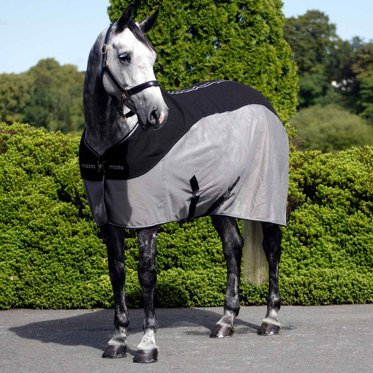 The Masta Waffle Air Tech Cooler Rug is made from breathable, wicking waffle fabric with a soft honeycomb structure. Making this rug ideal to cool your horse down slowly as the honeycomb waffle material traps small pockets of heat, allowing heat and moisture to slowly evaporate. The mesh sides allow for maximum airflow making this rug suitable for year round use, especially for horses that can get too hot in a regular cooler rug. The combination of technical materials mean this rug is not only great for cooling down after exercise to help prevent chills, but also perfect to use after bathing or for traveling when a lightweight layer is required. The anti-rub lining at the chest and fleece wither pad reduces any unwanted pressure or rubbing making this versatile rug comfortable for all horses and ponies to wear. Featuring a surcingle fastening to the front with additional hook and loop closure for added security, adjustable cross surcingle's on the belly and a fillet string.