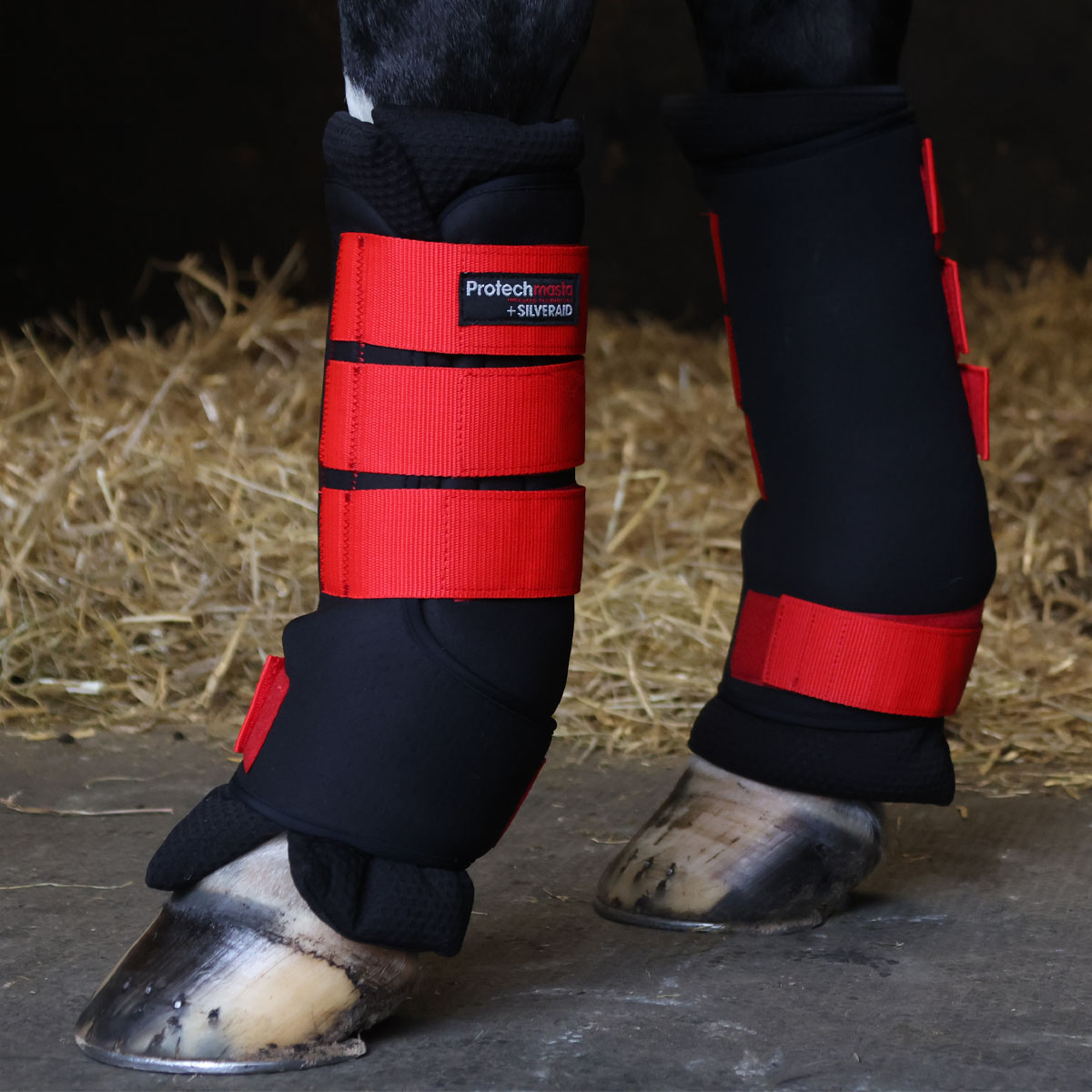 A: The Protechmasta SilverAid leg wraps use two therapeutic properties to benefit your horse: Protechmasta FIR (Far Infrared) rays, and SilverAid technology – an antimicrobial treatment which uses silver ions to kill bacteria.