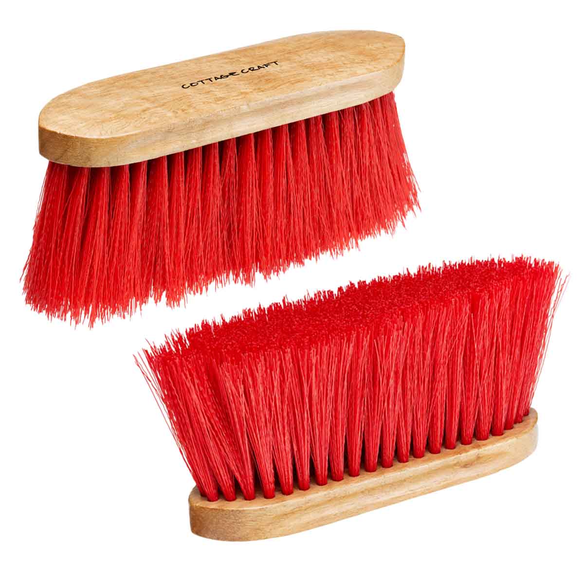 Designed to flick off dirt and dust easily leaving your horse's coat clean and shiny. Polishes the coat so the horse can look freshly groomed at all times. Wooden backed brush with red colour bristles.