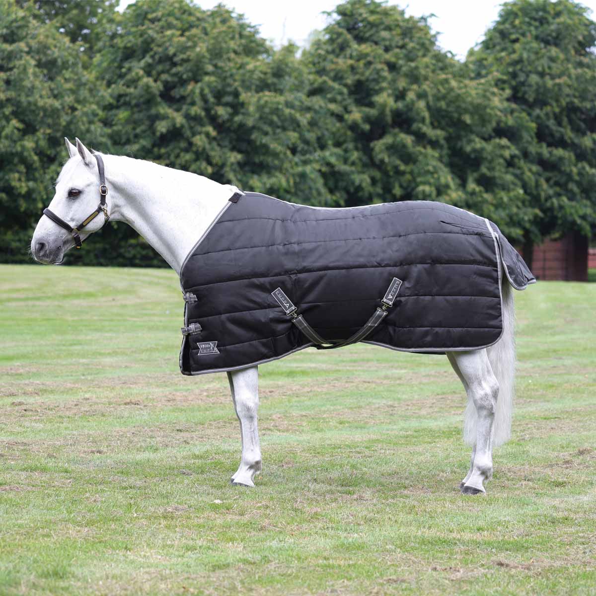 This mid weight stable rug is the ideal choice for when the days and nights turn cold and a heavier layer is required. The revolutionised StormX Empra stable rugs are designed using a 420 denier outer material ultimate protection and durability. This luxurious rug has a 200g fill, perfect for use on cooler days and is lined with a smooth and breathable poly-tec lining to offer optimum comfort. Completed with Empra cross surcingle’s, twin buckle chest fastenings and wipe clean fillet string to keep the rug securely in place. Finished with rubber StormX logo badge, padded wither area and generous tail flap for extra protection.