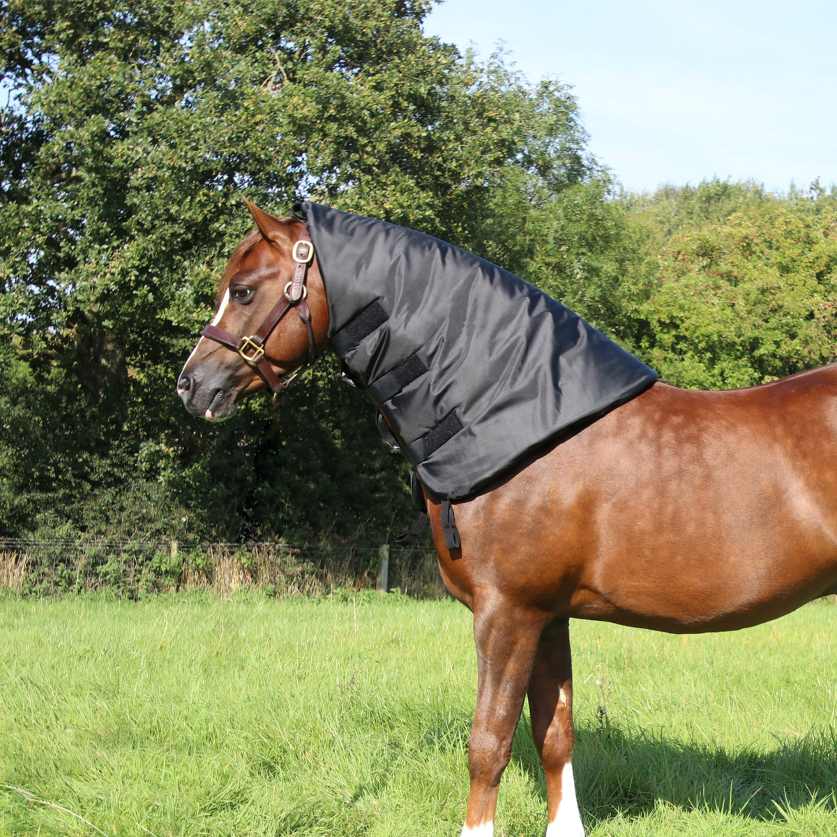 The Supreme Products neck sweat is lined with thermal material designed to reduce hard or fat necks by keeping heat in. Attachable by loop to a headcollar, this neck sweat can be worn indoors or outdoors. Available in Small, Medium, Large or Extra Large. This garment can be used indoor or outdoor, secured to headcollar and rug. No further sweat products are required for use.