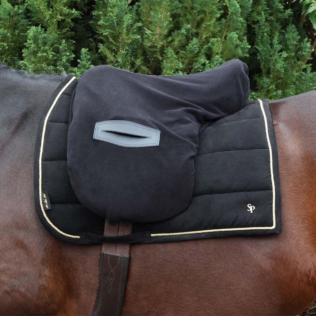A classic black fleece saddle cover that will protect your saddle from dust and scratches, keeping it clean and mould free when stored in the tack room or when traveling to competitions in the lorry or car.