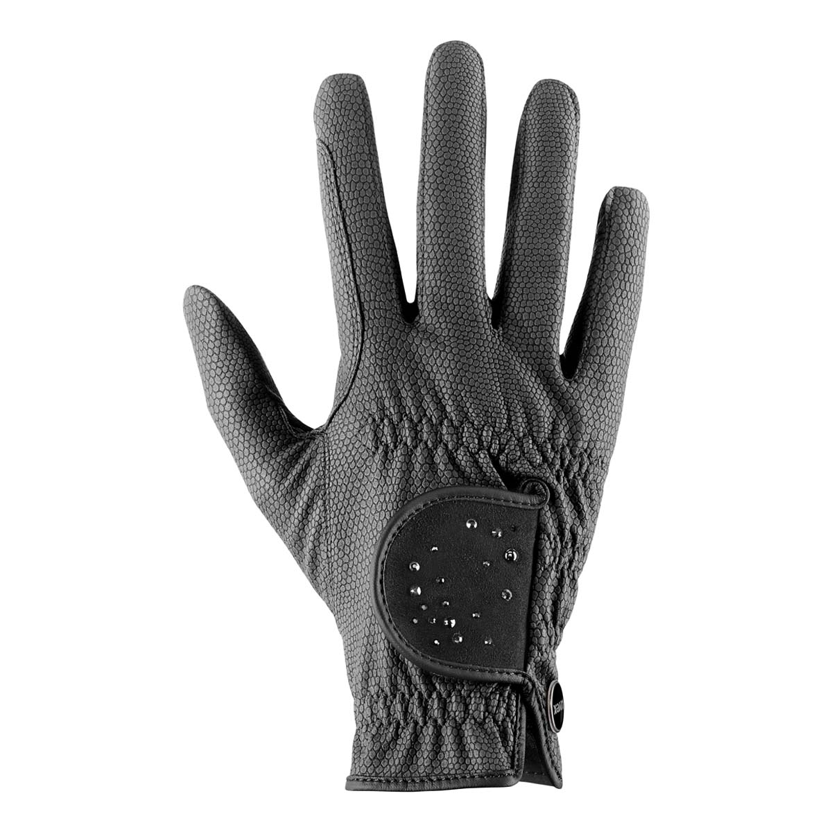 An elegant glove with glittering motif made from Swarovski® crystals and pearls on the closure tab. Highly comfortable and offers active moisture management. A favourite for the dressage or show jumping enthusiast.