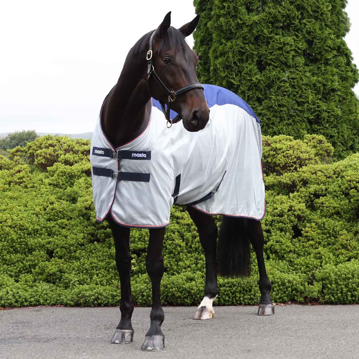 The lower section is made from a soft, lightweight polyester fly mesh to help protect from biting insects whilst enabling air to flow, keeping your horse cool in warm weather. Anti-rub lining along the neck and shoulders helps to prevent any unwanted rubbing. Team up with the Masta Fly Mask for ultimate protection.